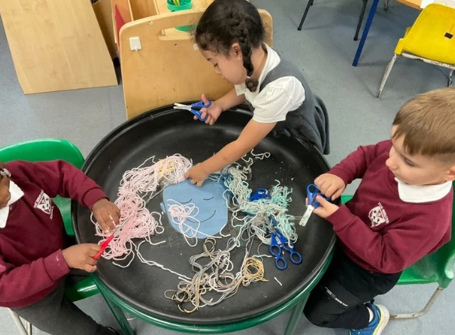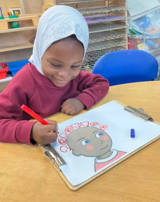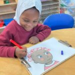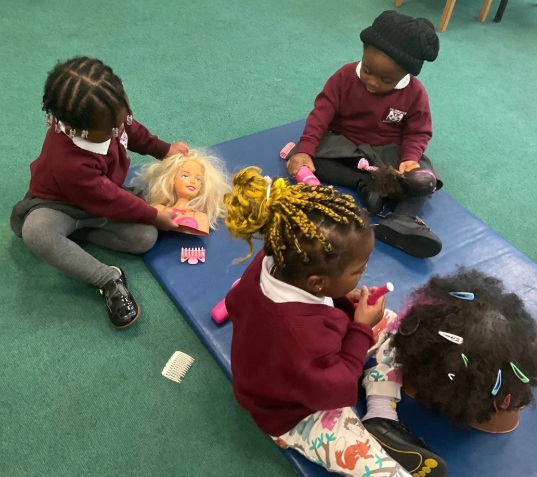 The children had a lovely opportunity to learn about Afro and different hair texture through activities such as bead threading and ‘hair cutting’. In relation to black history month, nursery have been learning about their differences and they’ve been making a self portrait by looking in the mirror.
